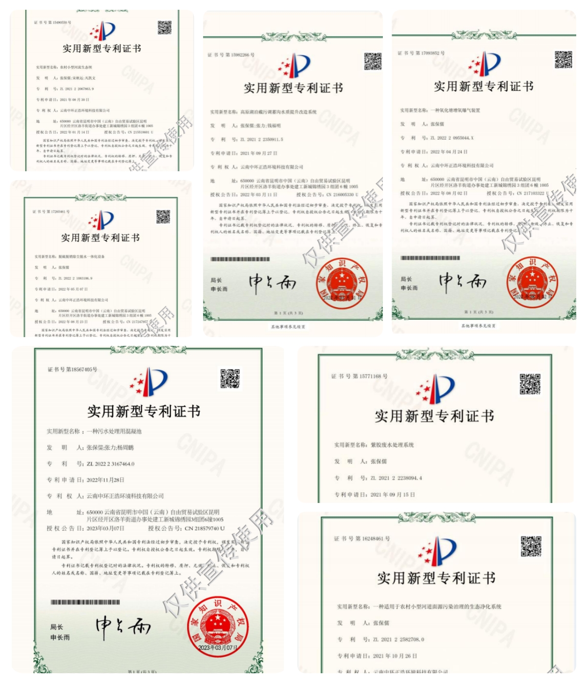 我公司具有云南省環(huán)境保護(hù)行業(yè)污染治理資質(zhì)證書,專業(yè)類別:廢水治理:生活污水、工業(yè)廢水、醫(yī)院廢水;生態(tài)治理(保護(hù))及恢復(fù)湖泊工程。有農(nóng)村小型河流生態(tài)壩、脫硫脫硝除塵脫水一體化設(shè)備、高原湖泊截污調(diào)蓄溝水質(zhì)提升改造系統(tǒng)、一種適用于農(nóng)村小型河道面源污染治理的生態(tài)凈化系統(tǒng)、一種氧化塘增氧曝氣裝置、紫膠廢水處理系統(tǒng)、一種污水處理用混凝池的專利證書。