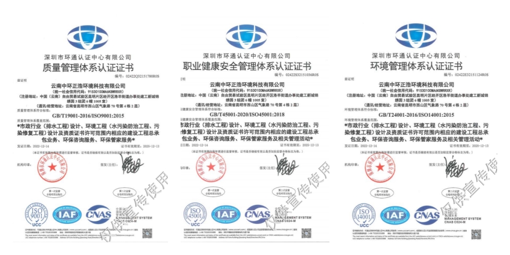 云南中環(huán)正浩環(huán)境科技有限公司成立于2016年12月09日,企業(yè)的經(jīng)營范圍為:許可項(xiàng)目:地質(zhì)災(zāi)害治理工程施工;地質(zhì)災(zāi)害治理工程監(jiān)理;地質(zhì)災(zāi)害治理工程勘查;地質(zhì)災(zāi)害治理工程設(shè)計(jì);各類工程建設(shè)活動(dòng);地質(zhì)災(zāi)害危險(xiǎn)性評估;建設(shè)工程勘察;建設(shè)工程設(shè)計(jì)。一般項(xiàng)目:環(huán)保咨詢服務(wù);生態(tài)資源監(jiān)測;環(huán)境保護(hù)監(jiān)測;固體廢物治理;地質(zhì)災(zāi)害治理服務(wù);土壤污染治理與修復(fù)服務(wù);土壤環(huán)境污染防治服務(wù);水污染治理;水環(huán)境污染防治服務(wù);大氣污染治理;大氣環(huán)境污染防治服務(wù);生態(tài)恢復(fù)及生態(tài)保護(hù)服務(wù);技術(shù)服務(wù)、技術(shù)開發(fā)、技術(shù)咨詢、技術(shù)交流、技術(shù)轉(zhuǎn)讓、技術(shù)推廣;專業(yè)保潔、清洗、消毒服務(wù);環(huán)境保護(hù)專用設(shè)備銷售;環(huán)境監(jiān)測專用儀器儀表銷售;貨物進(jìn)出口;技術(shù)進(jìn)出口。持有住建部門頒發(fā)的市政行業(yè)專業(yè)乙級和環(huán)境工程專項(xiàng)乙級工程設(shè)計(jì)資質(zhì)證書、國家發(fā)改委備案的工程咨詢單位證書(備案編號 9153010MA6K8WRRXR-20)、環(huán)境保護(hù)污染治理資質(zhì)乙級證書、環(huán)保管家資質(zhì)證書、環(huán)境咨詢認(rèn)證證書等。