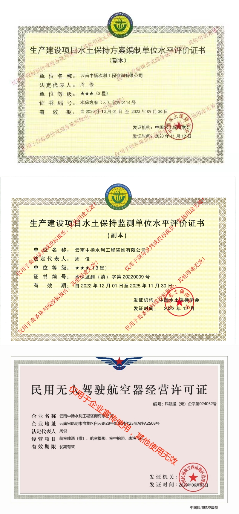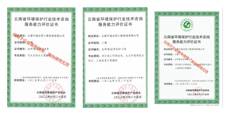 云南中揚(yáng)水利工程咨詢有限公司成立于2011年,注冊資金100萬元整。公司從事的主要業(yè)務(wù)為生產(chǎn)建設(shè)項(xiàng)目水土保持咨詢設(shè)計(jì)(水保方案編制、水保監(jiān)測、技術(shù)評估及咨詢)、水土保持規(guī)劃、水利工程設(shè)計(jì)(農(nóng)田水利、河道)、可行性研究報(bào)告編制、土地復(fù)墾等。公司已取得水土保持方案編制、水土保持監(jiān)測、工程咨詢備案、環(huán)境污染治理、環(huán)境保護(hù)行業(yè)技術(shù)咨詢服務(wù)能力評價(jià)證書、民用無人駕駛航空器經(jīng)營許可證等資格證書,是云南省水土保持學(xué)會和云南省環(huán)境保護(hù)協(xié)會會員。
